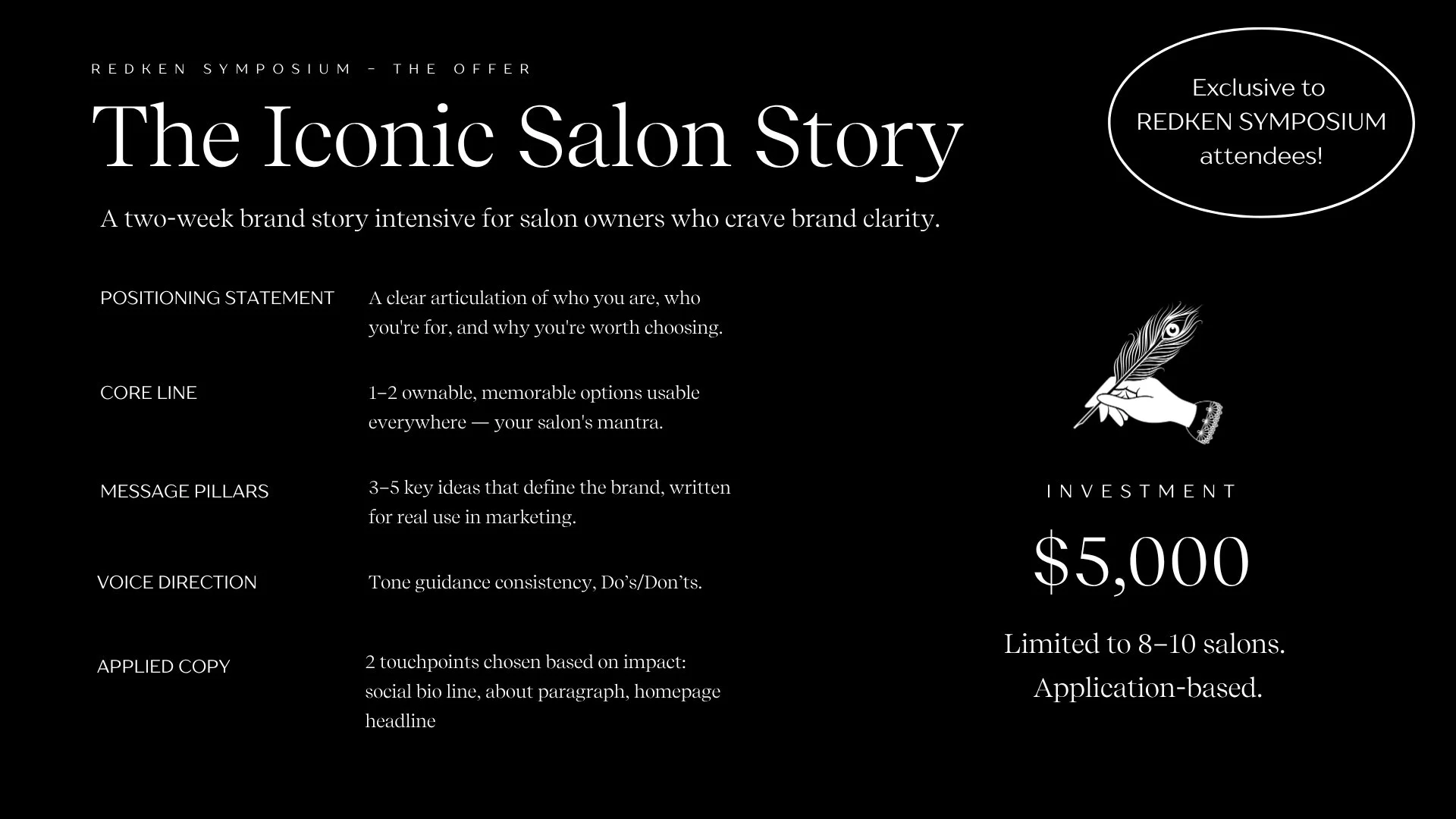 I’ll be sharing my methodology for salon brand story strategy exclusively for salon owners and independent stylists at the REDKEN SYMPOSIUM BUSINESS FORUM in Las Vegas, June 13-15.